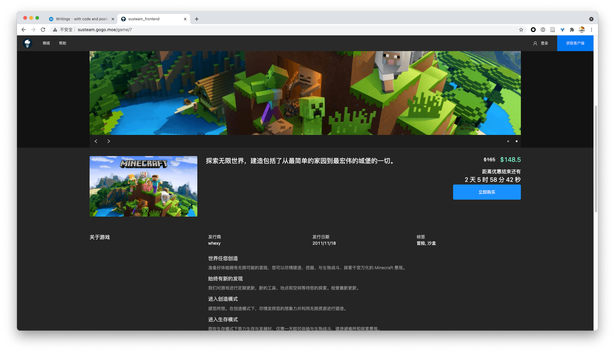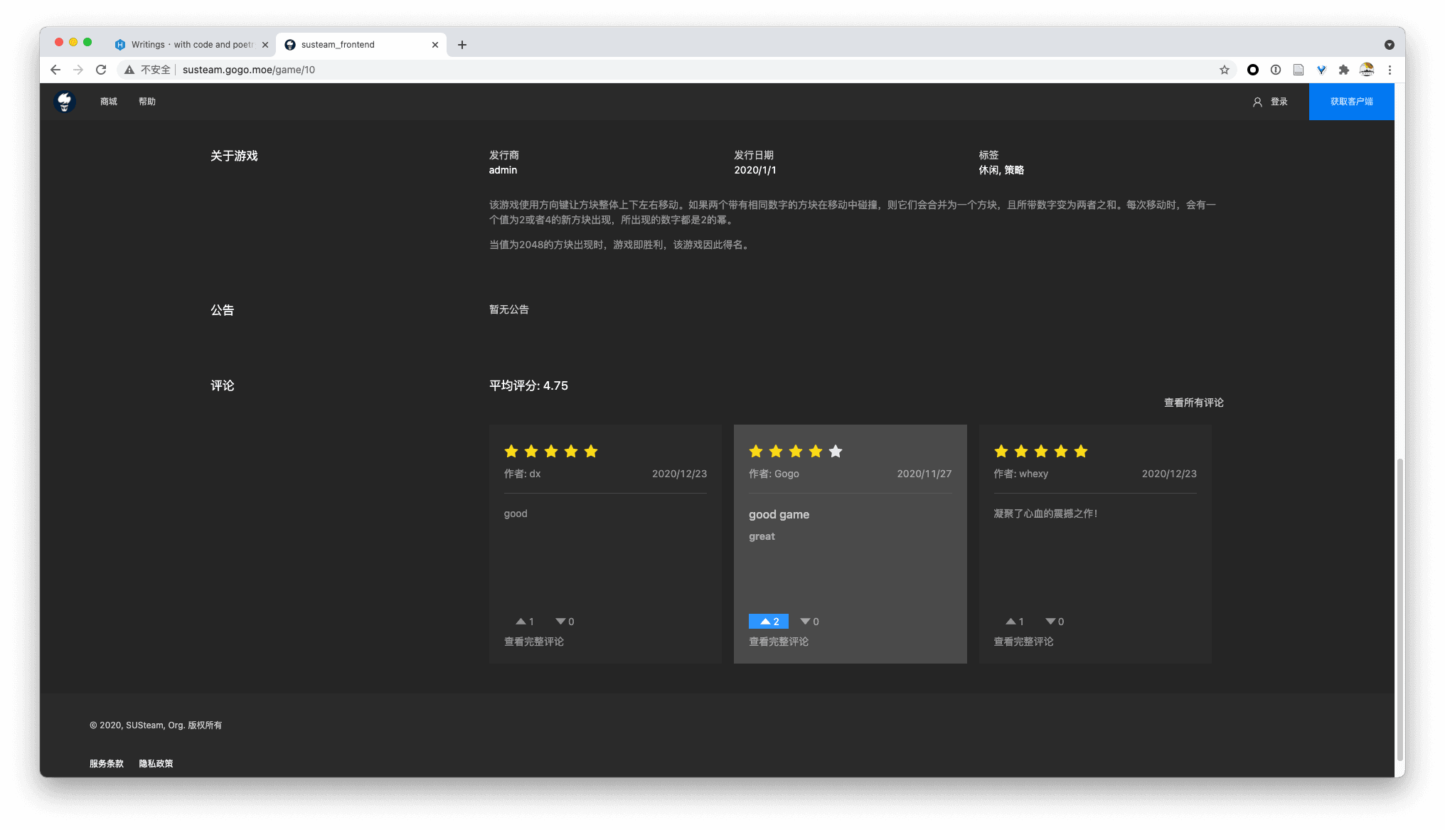 For users, SUSTeam provides a web frontend mainly for browsing and purchasing, and a client that adds local game library, download, and update functions on top of the web interface. For developers, SUSTeam provides a management platform and SDK for integrating platform services.