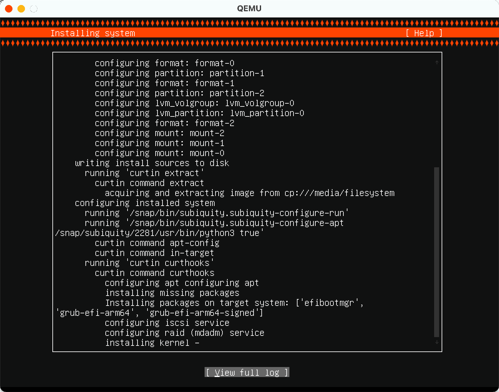 To test if QEMU actually works on the laptop, I download Ubuntu Server 20.04 (aarch64). The following is a shell to run the VM.